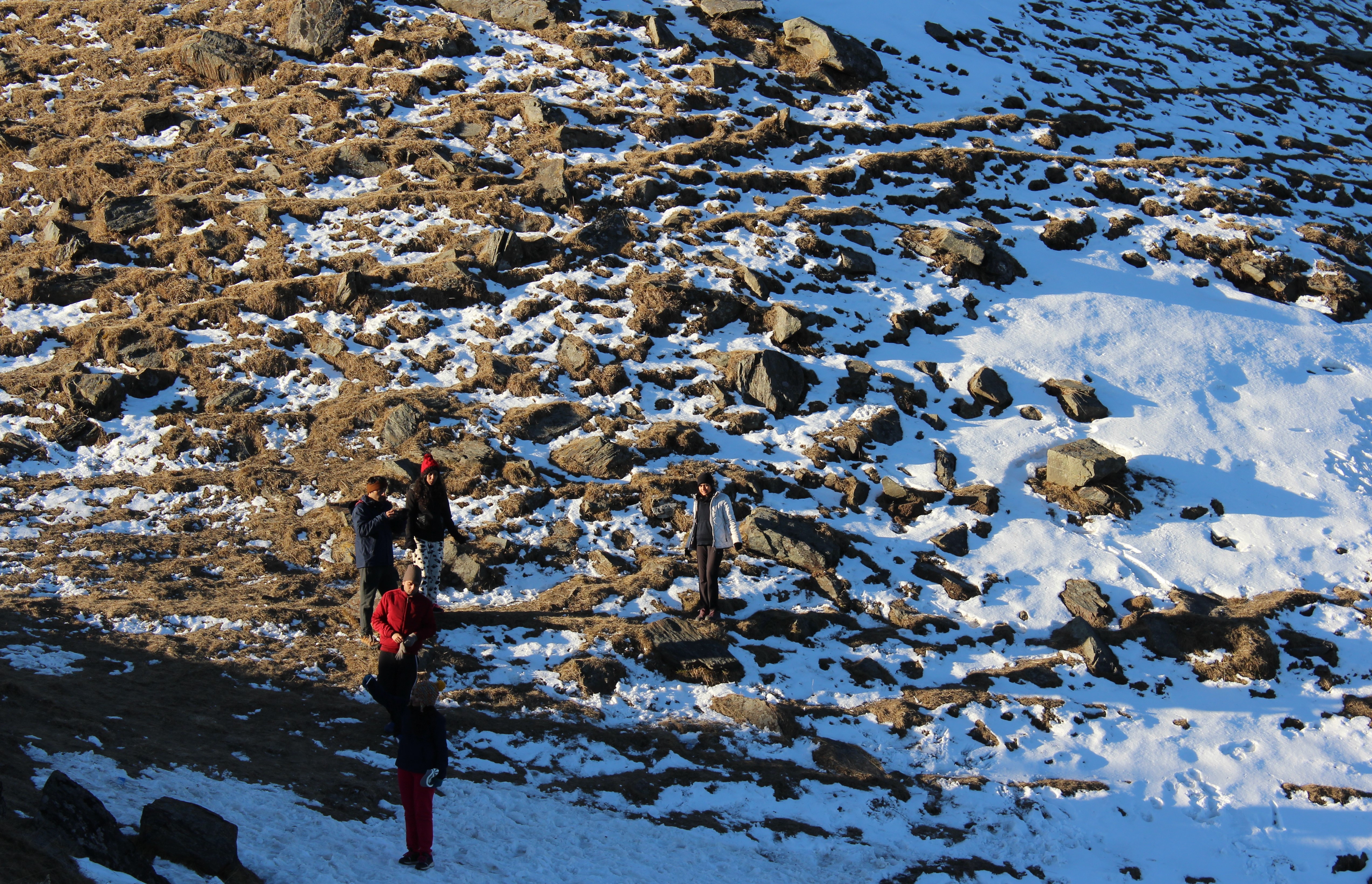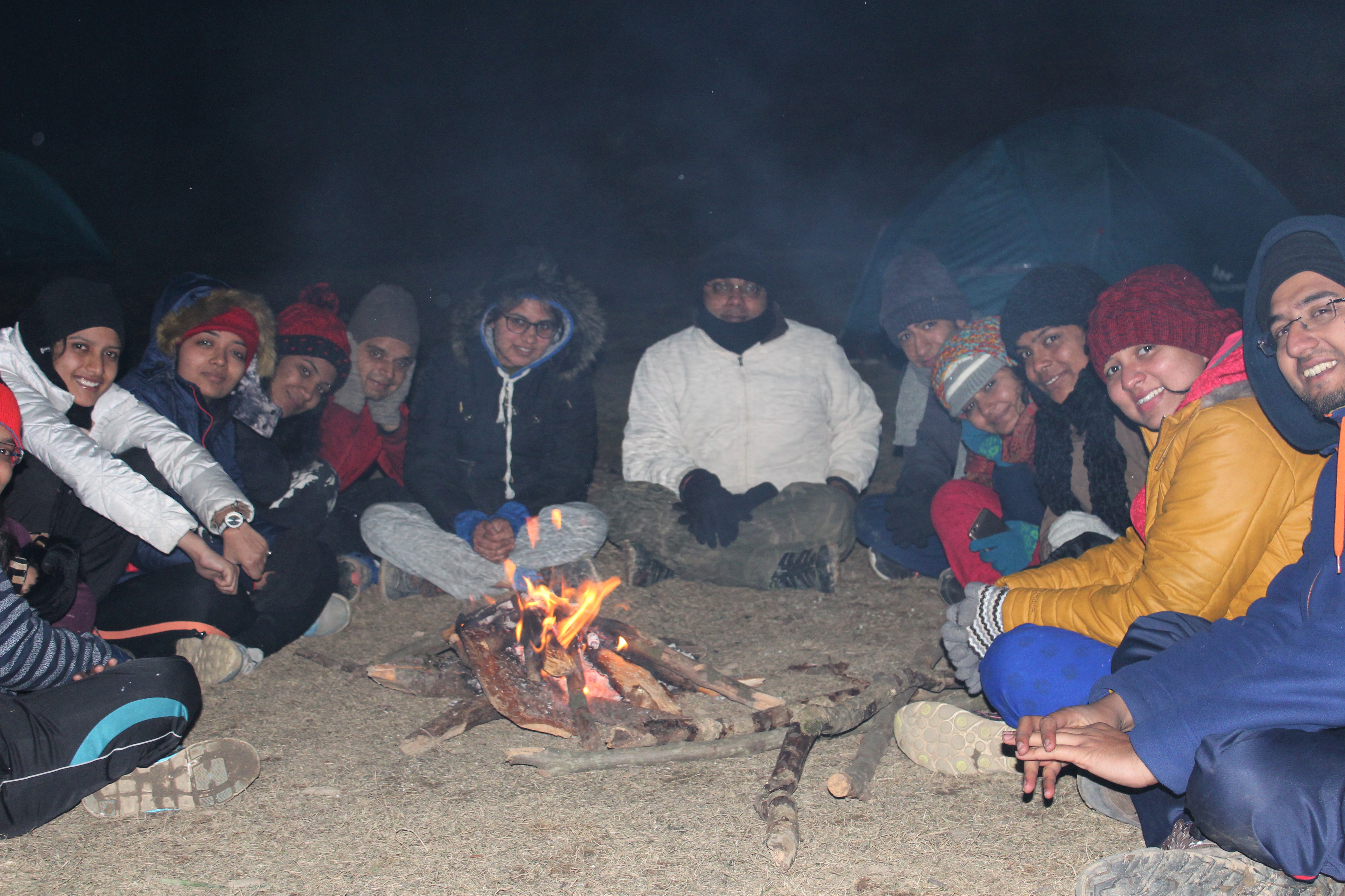 On reaching the campsite we had to choose one option for sleeping – tents or guest house. Since I had never experienced sleeping in tents before so I raised my hand for sleeping in tents. And the struggle started ! It was freezing cold, I layered socks and slipped into my sleeping bag. I was unable to sleep whole night due to cold. I lost my patience and unzipped tent. I saw infinite glowing stars all over the dark sky. I kept staring at that view for some minutes. It was mesmerizing and beautiful.