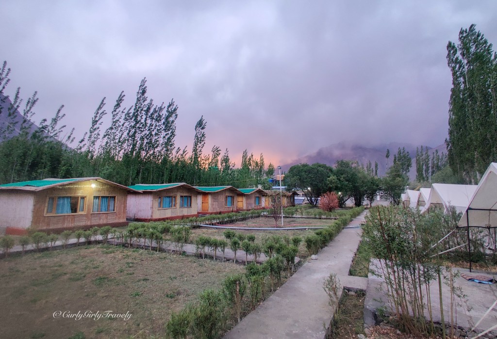 The daylight is harsh while evenings are freezing. If possible, avoid booking your stay in tents. A warm place is vital to get proper rest so we booked our stay in a luxurious bamboo tent. The huts were quite spacious and warm. The cost of stay and food was 2000/- for two people at Nubra Valley Resort.