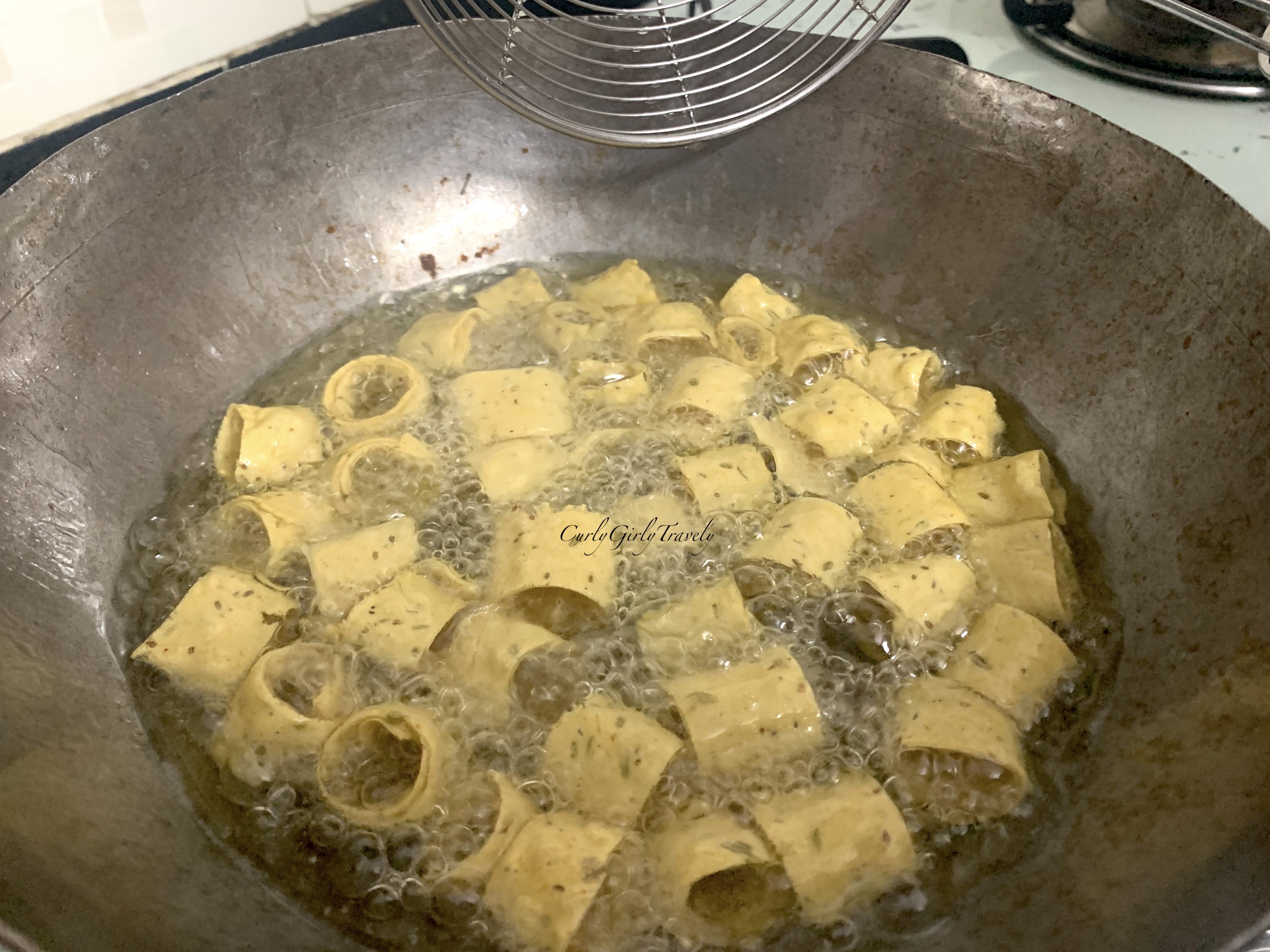 Step 4: Place the kadai on the stovetop and add the desired amount of oil. Heat the oil over medium to medium-high heat until it reaches the desired frying temperature. You can test the temperature by dropping a small piece of gune into the oil. If it sizzles and bubbles immediately, the oil is ready. Fry them until golden brown, allow them to cool down, and Gune is ready.