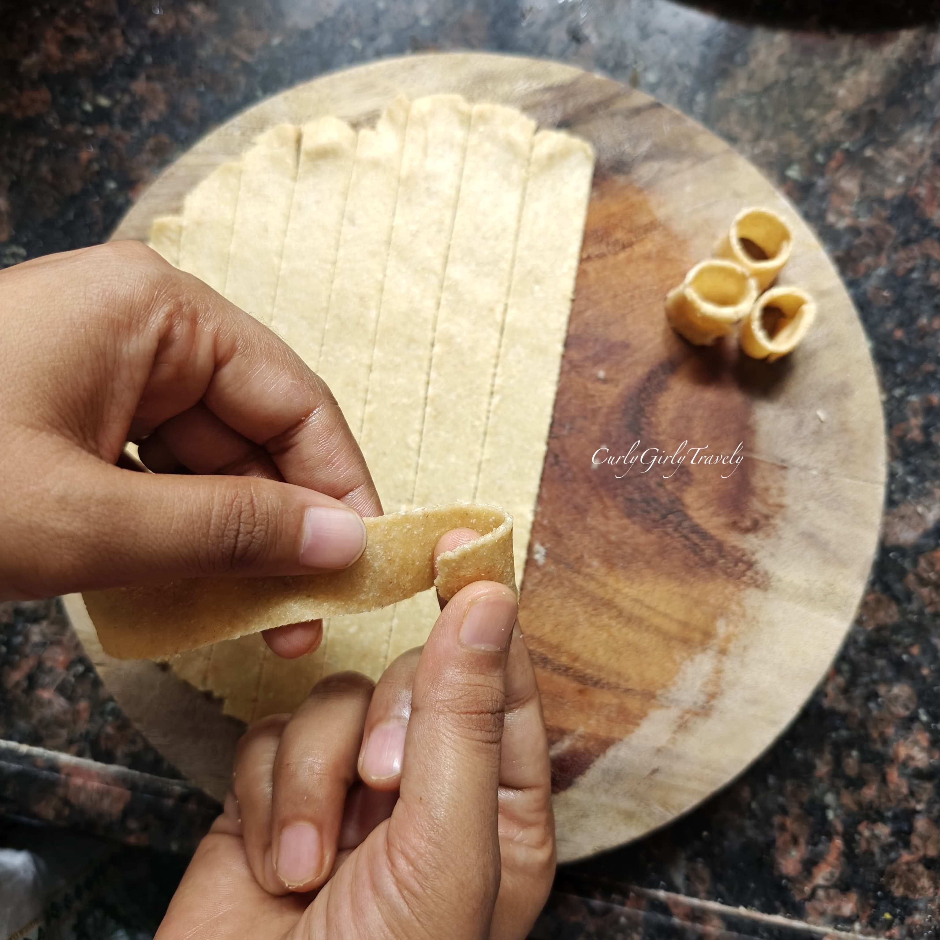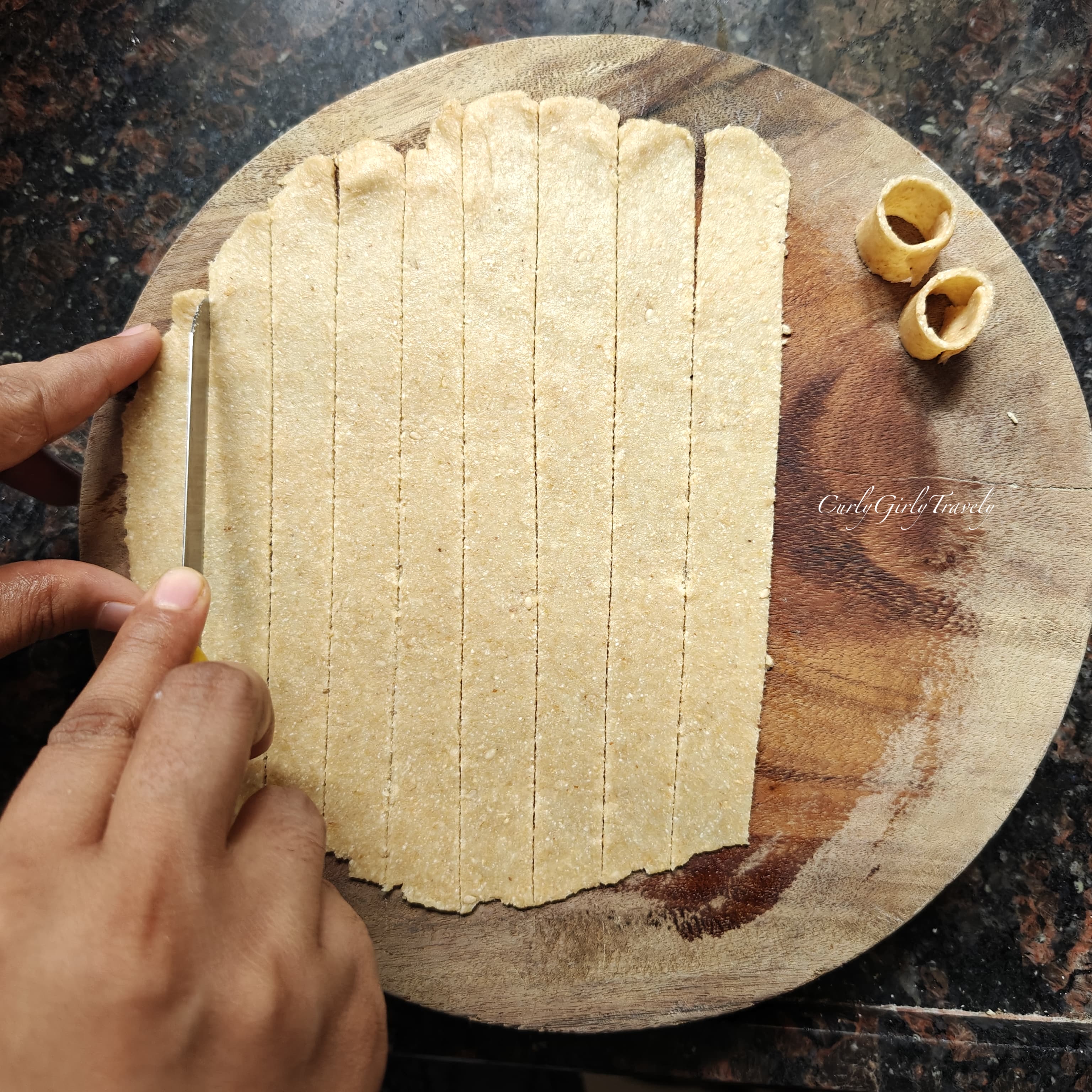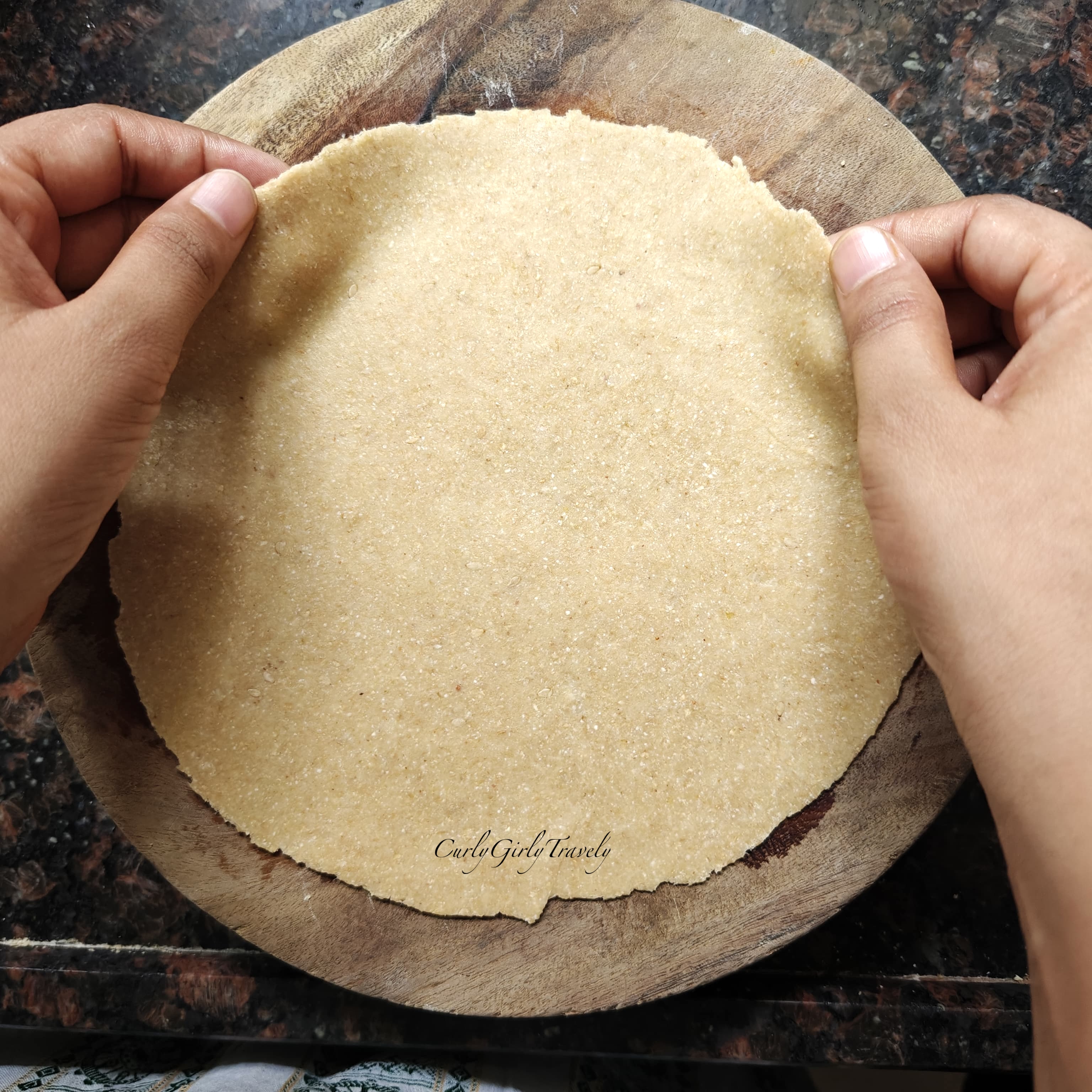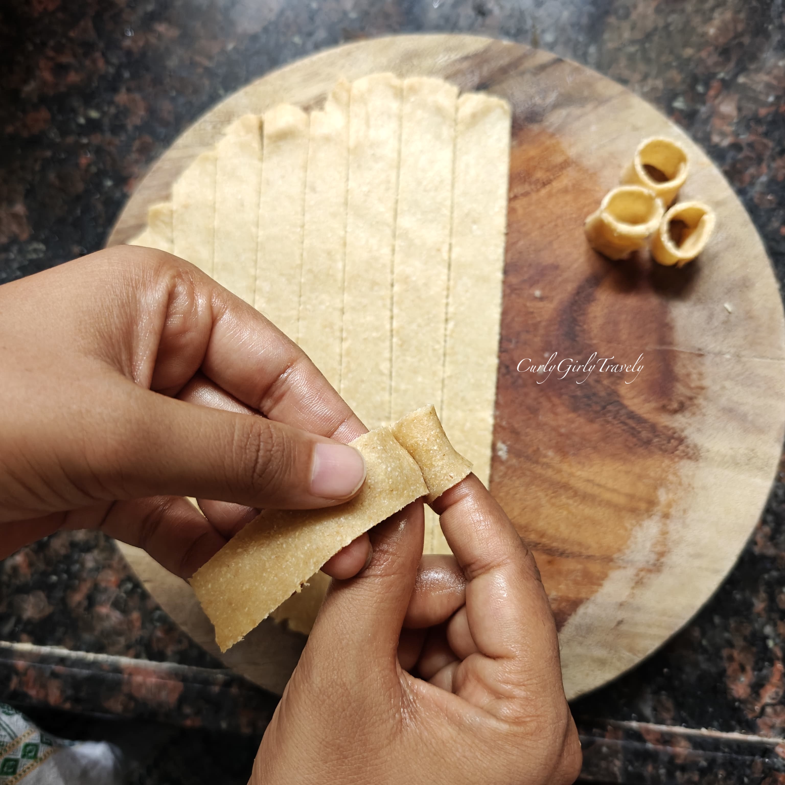 Mix all the above ingredients with water to make a firm dough. Let it rest for 20 minutes, then roll it out flat and shape it.