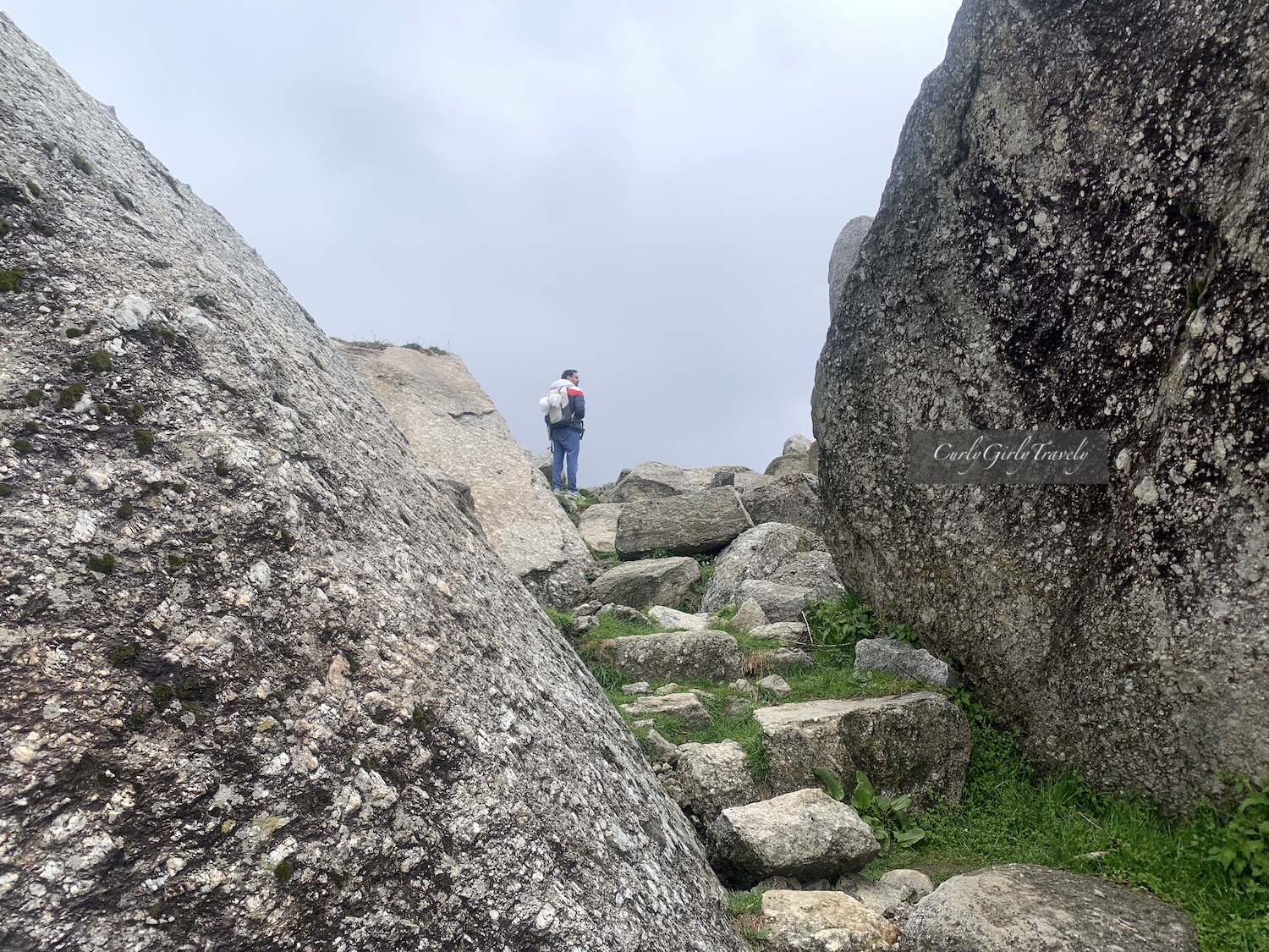 After 15 – 20 minutes hailstorm was gone but the rain didn’t stop. We started walking in the rain. When I turned back to breathe deep, I saw fog swirling around mountains. With only 5% of the hike remaining, the rain finally stopped.