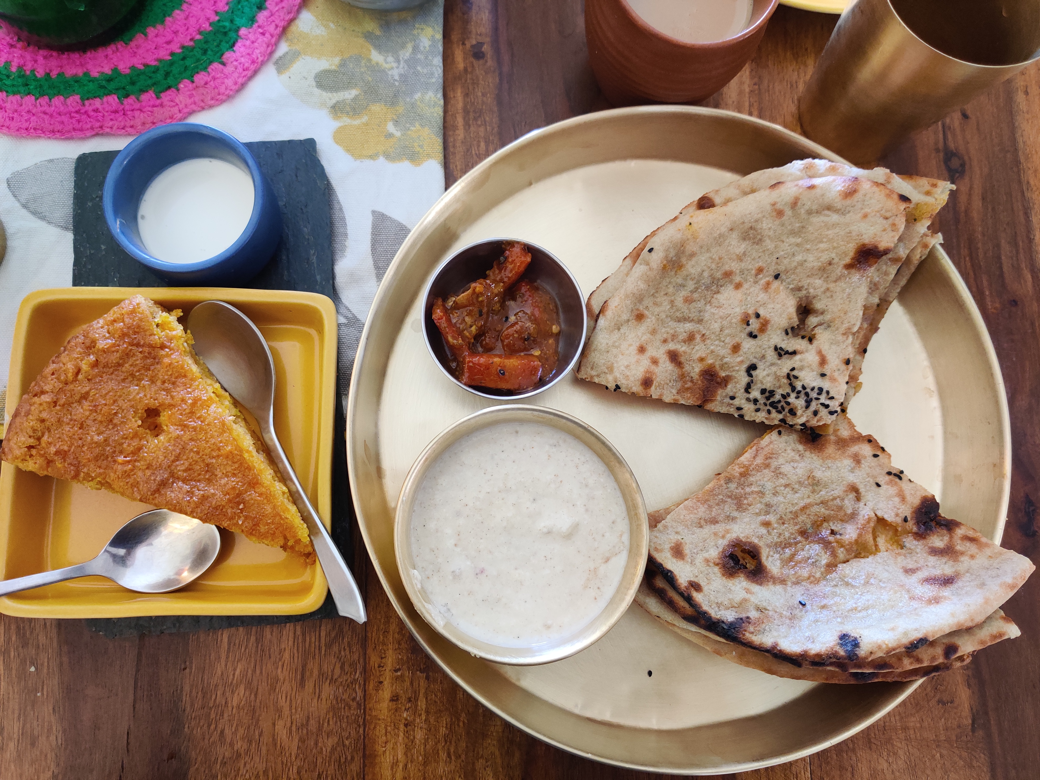 On the second day of our adventure in Spiti Valley, we rented a bike and headed to Deyzor, hoping to store our bags there. I knocked on the door and immediately noticed a colorful vegan bowl, brimming with vibrant veggies and fruits, just like a rainbow. My gaze then shifted to the man enjoying it near the reception. As soon as he noticed us, he got up, leaving his delicious meal behind.